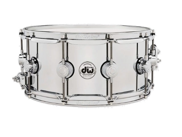 The DW Collector's Series is a pinnacle in custom-made drums. The Collector's Series offers quality, elegance, and performance fit for the touring or recording professional and the passionate player or collector. This DW Collector's Series' Stainless Steel snare drum offers a heavy gauge rolled shell and delivers the classic versatility of a stainless-steel snare with fat attack and musical overtones. This snare is also fitted with our famed MAG throw-off, three-position buttplate, True-Pitch tension rods, nickel-plated triple-flanged hoops, and DW Heads by Remo U.S.A.