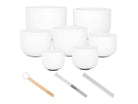 Modern interpretation of the Tibetan Singing Bowls The Sela Crystal Singing Bowl Set - Frosted 440 Hz includes seven crystal singing bowls with diameters ranging from approximately 20 cm (8" model) to approximately 36 cm (14"). The Crystal Singing Bowls are made of quartz crystal and have a chic frosted glass design with a rough, white surface. The material used is given excellent sound properties by a special manufacturing process in which glass is melted down and formed into the desired shape by a centrifuge. Crystal singing bowls, like the traditional variants made of bronze or brass alloys, produce spherical, long-lasting sounds with a powerful fundamental tone and "singing", harmonic overtones. In direct comparison, the modern variant made of glass sounds even somewhat clearer and significantly longer than its metallic counterpart. For music, meditation and singing bowl therapy Sela Crystal Singing Bowls are suitable for making music as well as for meditation, yoga sessions and sound massages. Their soothing voice can help relieve stress, deeply relax and bring body and mind into harmony. The Sela Crystal Singing Bowls can be played individually or as a set, and of course combined with other instruments such as our Sela Handpans to take listeners on a multi-layered sound journey. The bowls of this set are tuned to the notes B, A, G, F, E, D and C (from the smallest to the largest model). The concert pitch A is at 440 Hz - the standard in the western music world. With mallets and other accessories The Sela Crystal Singing Bowl Set comes with three mallets specially designed for use with crystal singing bowls. The included mallet with rubber head and handle made of Asian schima wood fits comfortably in the hand and allows both gentle striking and rubbing of singing bowls. In addition, two different rubbing sticks made of glass are included.